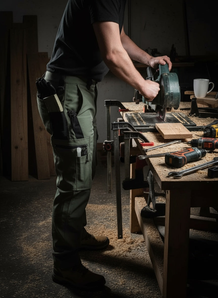 Il tessuto rinforzato e le cuciture robuste resistono a strappi, sfregamenti e lavaggi frequenti. Le tasche multiple sono progettate per portare attrezzi, metro, chiavi o smartphone in modo comodo e sicuro.